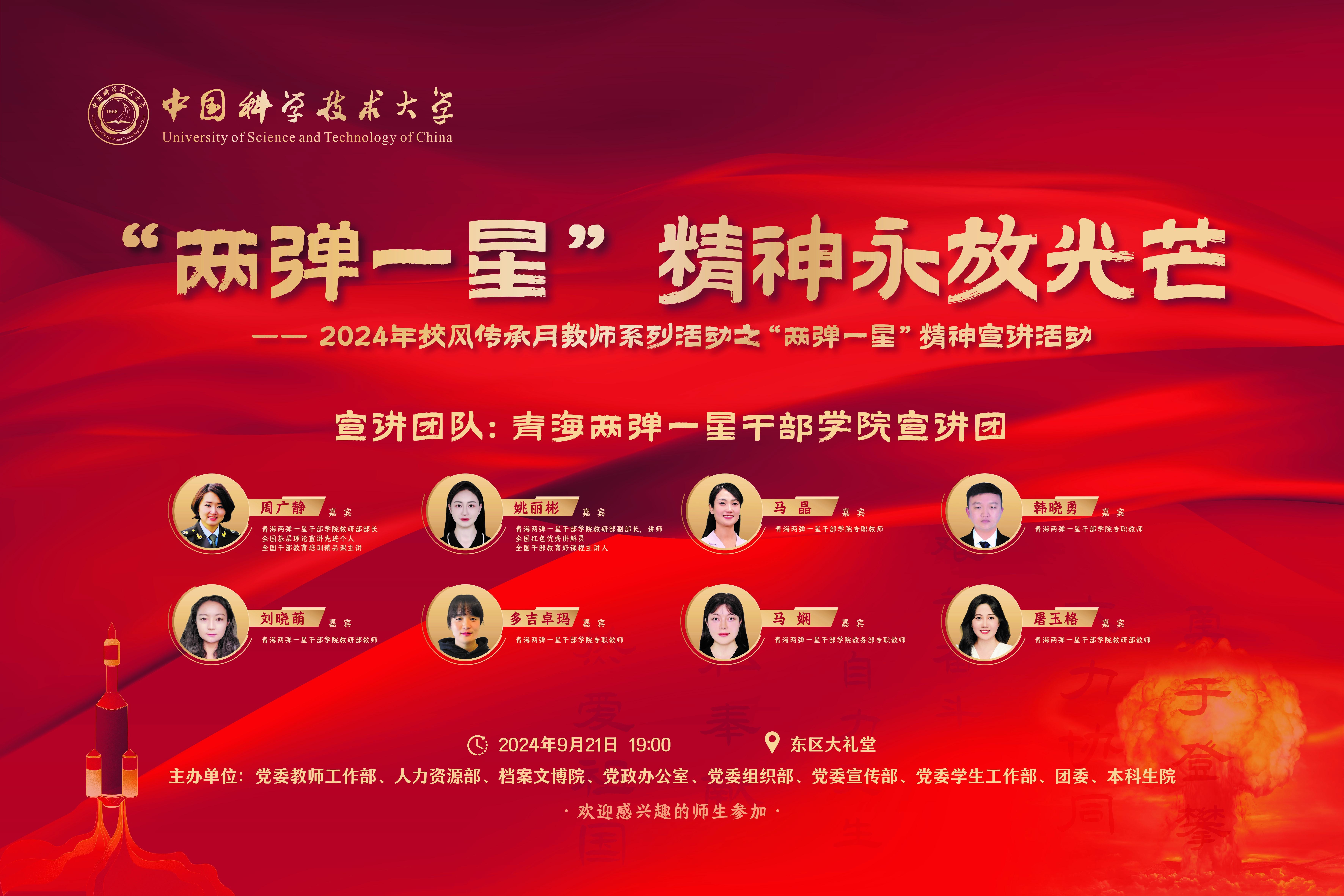 2024年是新中国成立75周年,中国第一颗原子弹爆炸60周年,在学校66周年校庆来临之际,为传承弘扬“两弹一星”精神,继承发扬老一辈科学家胸怀祖国、服务人民的优秀品质,学校邀请青海两弹一星干部学院宣讲团来我校开展弘扬“两弹一星”精神系列宣讲活动。现将有关安排通知如下。